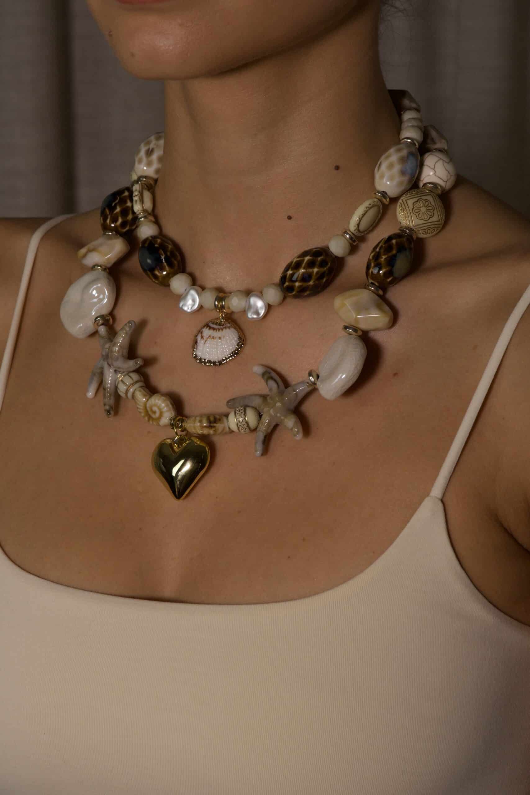 Šis vėrinys sukurtas moteriai, kuri trokšta atkurti ryšį su savo vidiniu pasauliu – intuityvia, mylinčia ir gilia savęs dalimi. Čia susitinka žemė ir vanduo – stabilumas ir tekėjimas, ramybė ir jėga. Kiekvienas kriauklės, žvaigždės ar perlo motyvas primena, kad esi dalis didesnio ciklo – gamtos, meilės ir gyvenimo.